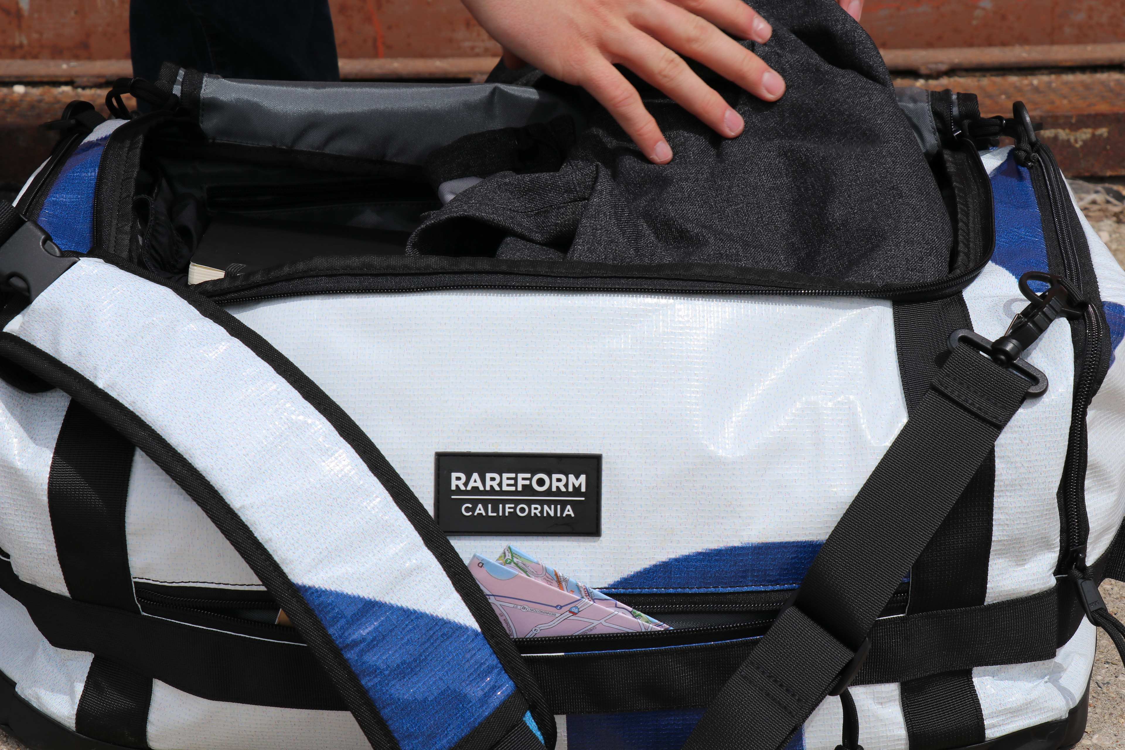 Designed in collaboration with Rareform for the gym goer, traveler, adventurer, and anyone in between, the Rareform travel duffel gets your gear where it needs to be when you need it. Constructed of re-purposed billboard vinyl, the improved storage capabilities and variety of carry methods makes this duffel perfect for trips to the gym, on traveling excursions, or adventurous escapades.